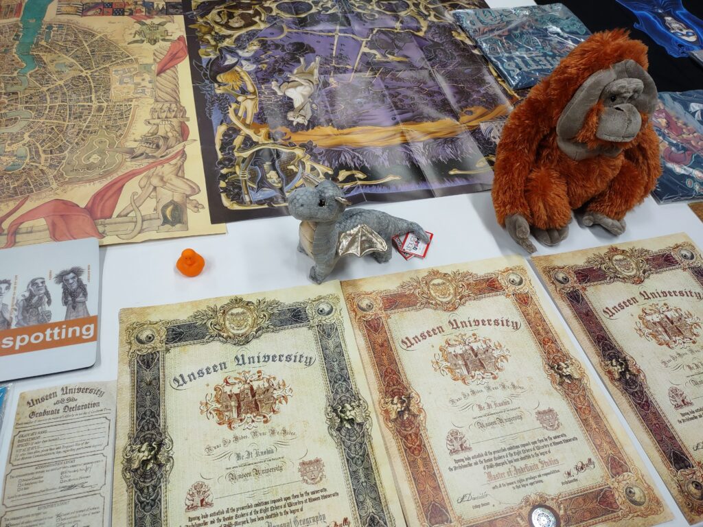 Don’t miss out on your chance to visit the Dealers’ Room and Fan Tables, located in the East Tower Riverside Center (Purple Level)! There are so many masterworks of art, cool exhibits, artifacts of conventions past, flyers for conventions to come, and books galore (I mean, what else did you expect at an SF convention?).