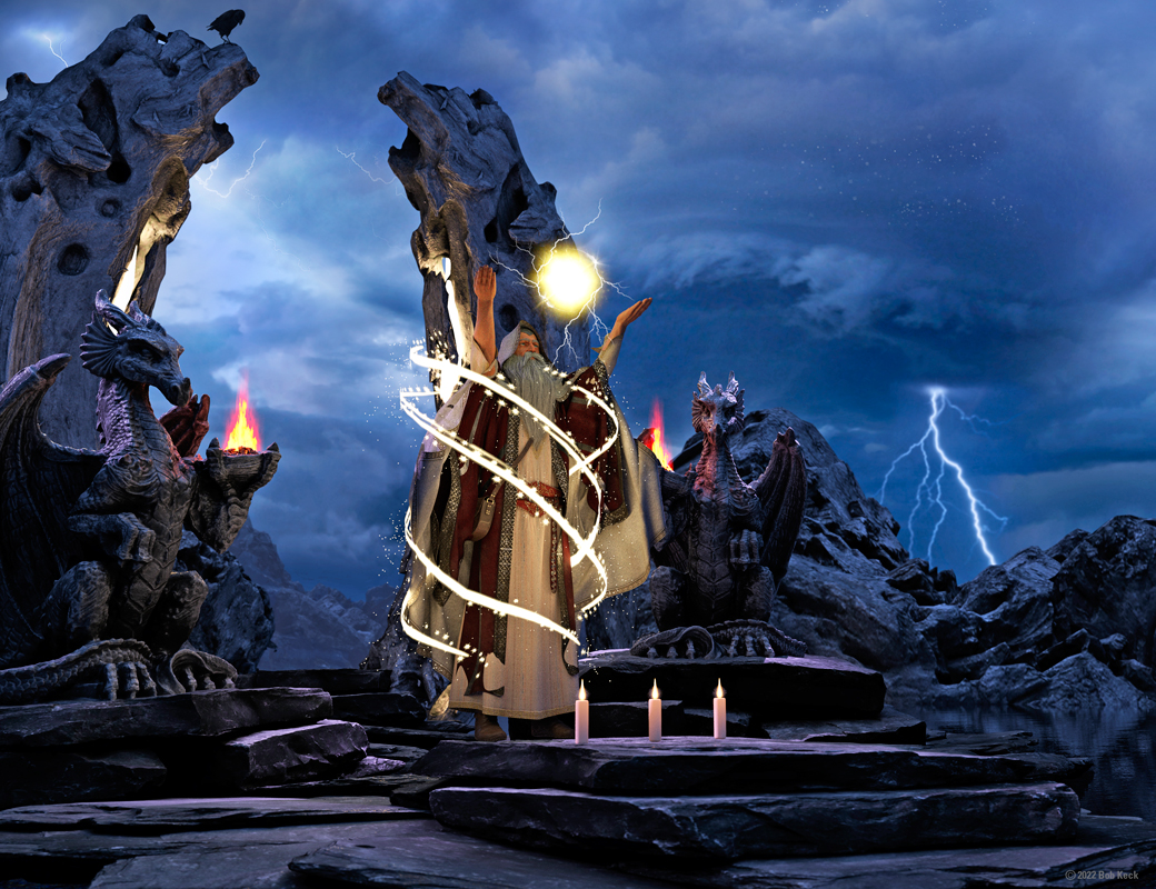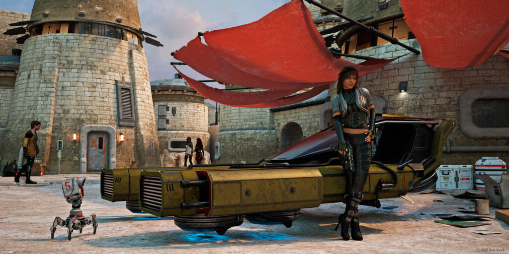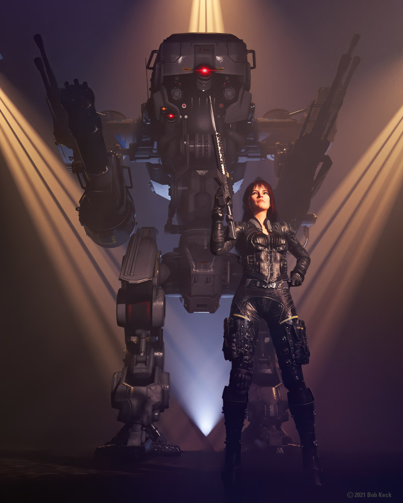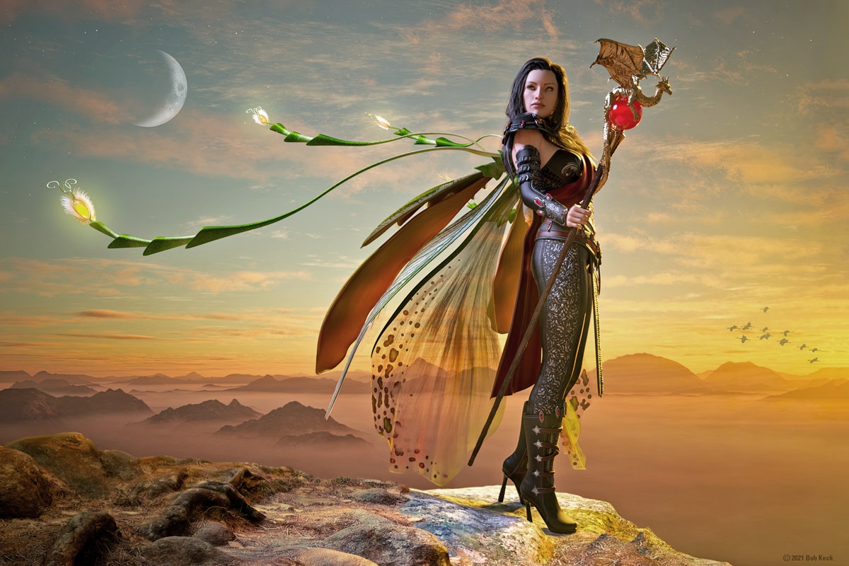Bob Keck is a California artist who has transitioned to using a computer to create art. 3D modeling software, art software and Photoshop are his main tools. He has a variety of styles with most of his images not containing any photos and having been totally created using only software. He has a BA and MFA in art from San Jose State University where he painted photo-realistic looking images using an air brush and acrylic paint. Having a secondary interest in science and programming made the progression to using a computer to create his art a natural step. He enjoys producing images that look like photos but are of subjects that don’t exist, as well as creating more traditional images. He has won multiple awards, shown at art shows and SF cons since the early 90’s, and has had his art used on book covers and CDs. For the past 25 years he has made a living doing graphic design, illustration, photography, and music.