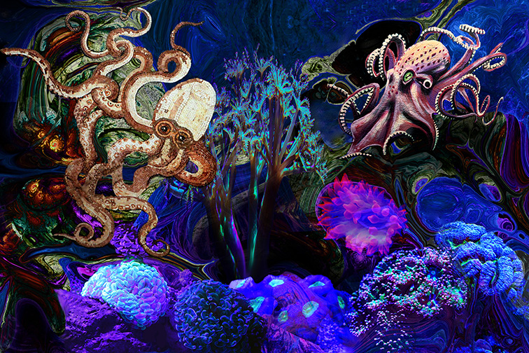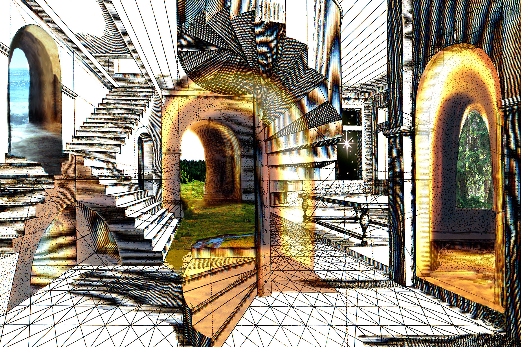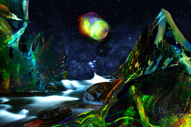 I use Adobe Photoshop and other software to transform and blend images, revealing secret places within and beyond our everyday surroundings. I want my art to open doors to the Multiverse, to imagination, and to magic.