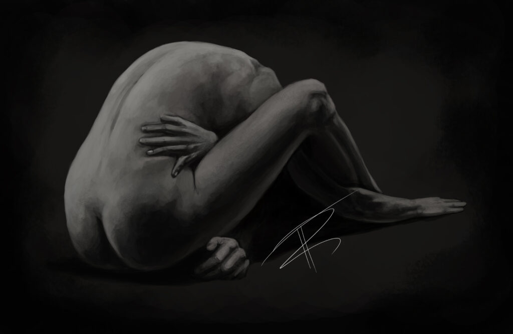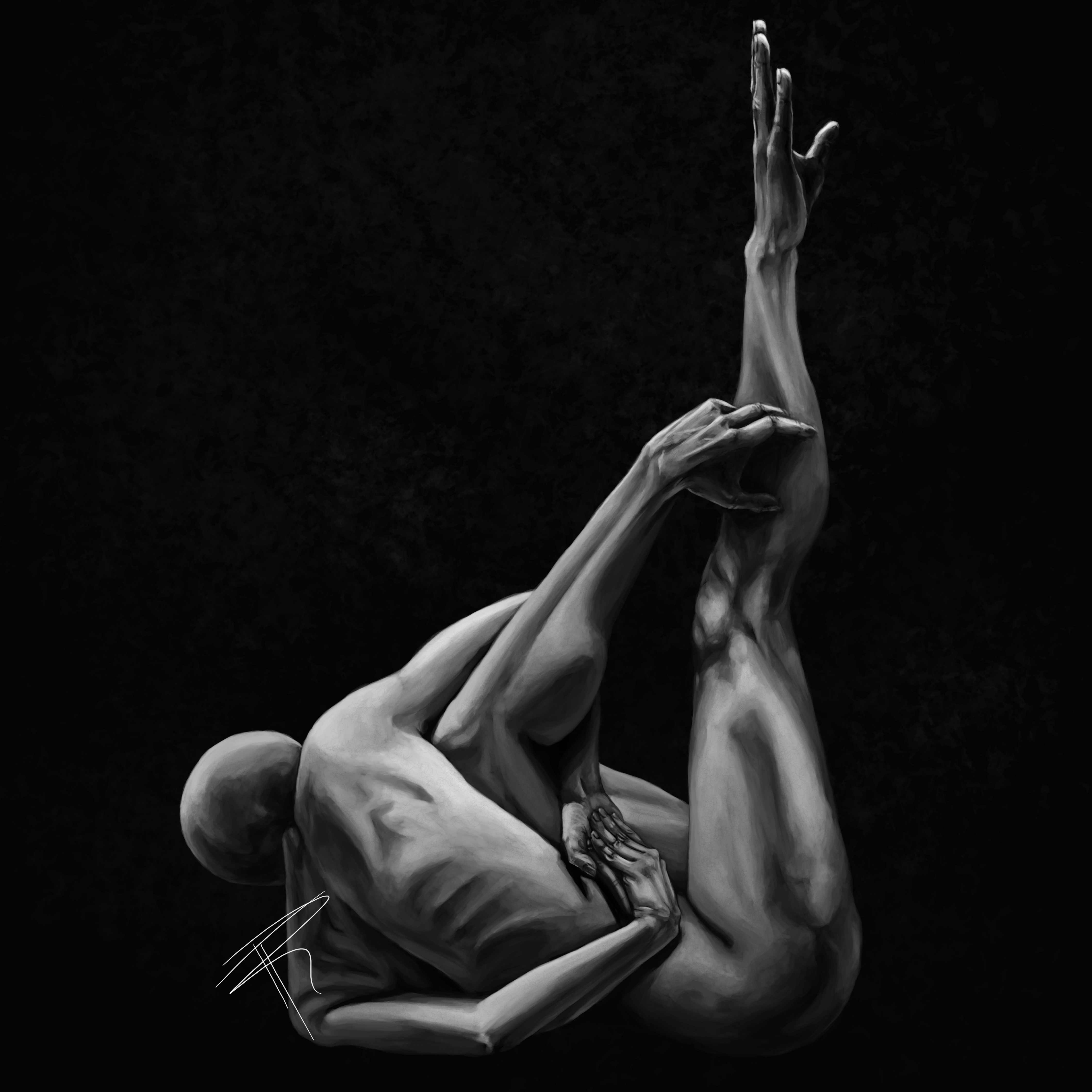 R. Taylor (she/her) is a digital painter and illustrator (and sometimes graphic designer) who specializes in art with a speculative bent. In addition to illustrations for her prose (in her alternate identity as R. J. Howell) and cover art for friends’ (and friends of friends’) novels, she paints an ongoing series titled simply “Hands,” (or, “that creepy hands series”) which she has been working on since 2014. “Hands” is a series of grayscale paintings depicting contorted or flexed nude figures with hands in place of feet. The paintings are an exploration of the beauty and emotion of the nude human form frozen in utmost mobility and motion with the expressiveness of multiple sets of hands. Otherwise, her art leans heavily to dragons and glorious vistas set around sunset or dawn, and look like the illustrations for Magic: The Gathering land cards. She likes to say that she paints with light.